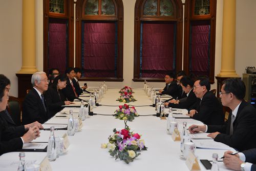 12月20日晚上,省长朱小丹在广州会见日本兵库县知事井户敏三一行。