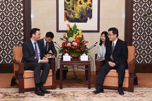 3月14日,副省长蓝佛安在广州会见瑞士再保险集团首席执行官缪汶乐一行。