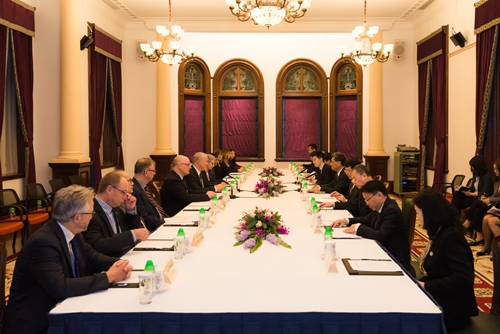 马兴瑞首先代表省委省政府对贺谨一行的来访表示欢迎,并简要介绍了广东最新经济社会发展情况。他表示,广东省与BC省互为友好省,两地传统友谊深厚,双向交流充分,合作空间广阔。马兴瑞指出,广东是人口大省、外经贸大省,BC省天然气能源丰富,高等教育世界领先,两地在清洁能源、教育和现代制造业等领域有很大合作空间。希望BC省抓住粤港澳大湾区的合作机遇,进一步推动两地在经贸、工业、航空、农业、教育、文化、旅游等多领域的交流与合作。