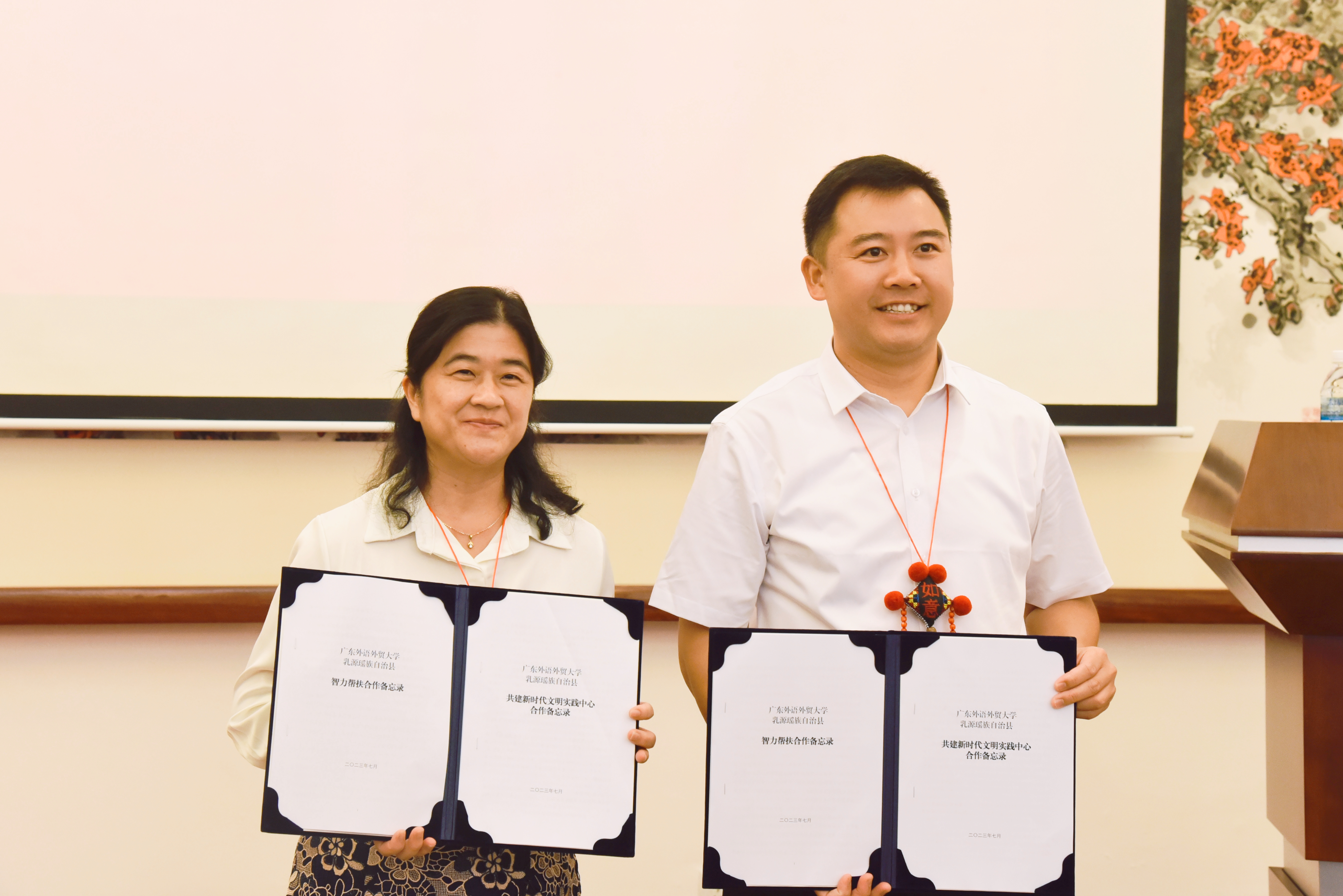 会上,广东外语外贸大学和乳源县政府签署文件,合作开展智力帮扶、共建新时代文明实践中心。乳源县工信局和桂头镇负责人分别围绕当地制造业、总部经济和乡村振兴情况进行招商推介,并和在场企业对接交流,达成初步合作共识。