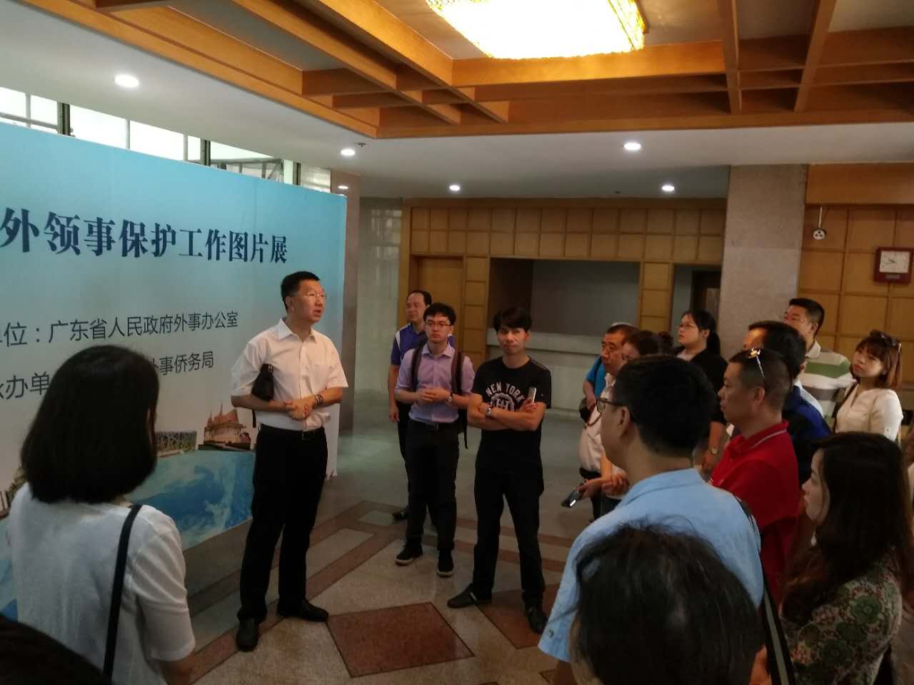 2017年6月9日至13日,外交部领事司组织的2017年第一期驻外使领馆领保联络员培训班一行30人来粤访问。在粤期间,李坚副主任宴请了培训班全体学员。培训班还前往深圳、佛山、广州实地考察了华大基因、创客工场、腾讯微信广州总部等科技创新和互联网企业,深入了解我省在科技创新和互联网经济领域所取得的发展成就。此外,培训班学员还参观了广东省预防性领事保护宣传教育基地(佛山)并在基地与我省相关企业、学校、留学机构、旅行社代表座谈,进一步了解和学习我省开展海外领事保护工作的成功经验,相关活动增强了学员们对我国情、省情的了解,活动取得预期效果。